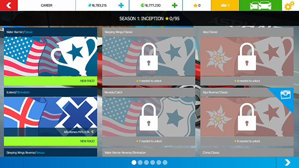 在狂野飙车氮气加速游戏中,生涯模式同样也有不同的赛季,玩家们可以在里面通过挑战来获得评分与金币,然后购买和强化自己喜欢的车辆,只不过《狂野飙车8》中的生涯模式一共9大赛季吗,而本作只有6大赛季,而且每一个赛季的比赛常数也少了一些,对一些喜欢单人挑战的玩家来说可能会显得过于单薄,一旦全部通关之后,就会觉得没有挑战性了。