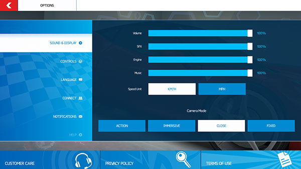 本作采用了和狂野飙车8同样的操作模式,使用重力感应转向,点击屏幕左边可以进行刹车漂移,点击右边则可以氮气加速。游戏在操作上的设置还是和原版看齐的,只不过操作的表现则差了许多,流畅度明显不够,每一次转弯漂移都会有延时的表现,给人的驾驶感一下子降低了好几个档次,都是一个妈生的,差距怎么就这么大呢。