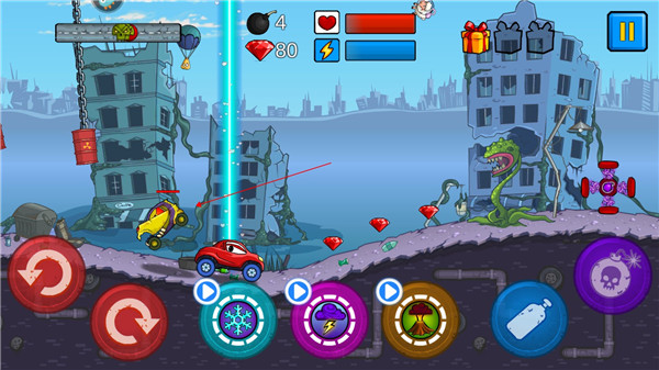 2、要是快被敌人追上来了,可以使用各种武器道具来阻拦它,其中最好用的就是炸弹了。