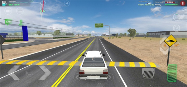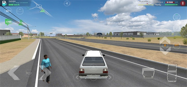 4、左边是方向,右边则是挂挡、刹车、油门,刚进入游戏时会给你派发任务,第一个任务是去接一个人;