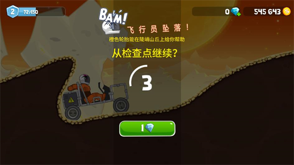 5、注意不要让赛车翻跟头,如果途中赛车翻跟头了那么游戏也就失败了;