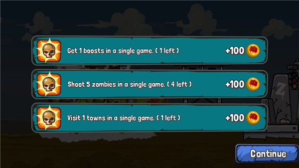 当然,在飞行的过程中也会遇到僵尸,这时候就需要你动用手中的机枪,拿来扫射它们了。点击屏幕中的空白处即可发射子弹,只是好的武器还要从商店里购买哦~