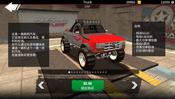 本站为用户提供的是亡命越野汉化版,该游戏已汉化,并且已经解锁MEMBER会员功能,美元付费车辆可无条件购买使用。小编亲测有效,快来下载体验吧!