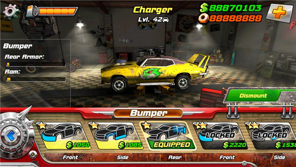 5、丰富的升级系统:车体、引擎、保险杠等等。