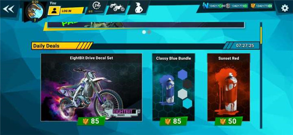 本次小编给大家带来的还是这款疯狂技能越野摩托车3破解版,该版本帮助玩家破解了无限货币,游戏中所有道具都可以通过钞票进行强制购买,让你轻松拥有自己想要的摩托车,随意改装,拥有强大动力。不过大家需要注意的一点是该游戏需要通过游戏加速器运行,否则存在卡界面,无法加载商城和关卡问题,小编亲测游戏可玩,赶紧来一起闯关吧。