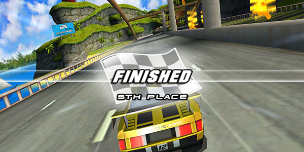 3、游戏采用重力感应的操控方式,比较简单,倾斜设备即可控制赛车的转弯动作。