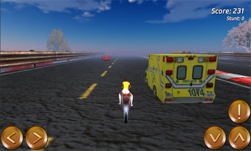 摩托赛车3D是一款刺激的竞速类游戏。玩家驾驶不同类型的摩托车,迅速疾驰在高速公路上,绝对的刺激体验。要小心迎面而来的各种快车,需要玩家绝对的全神贯注,快速的反应速度,因为一不小心就会车毁人亡。各种漂移与炫酷的花式驾驶,会给你带来不同的游戏体验。