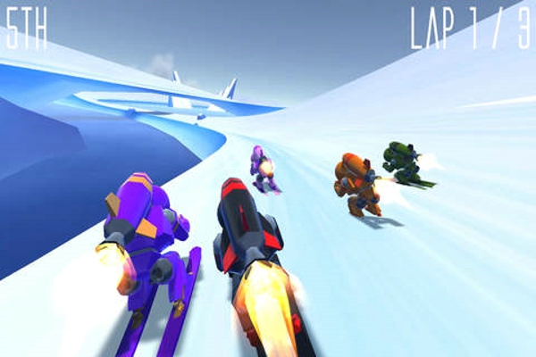 《火箭滑雪赛》拥有多个游戏模式,玩家将在各种雪地赛道上与对手进行追逐,虽然是滑雪游戏,但玩法方面完全是常见的竞速游戏的样子,玩家把这些身背火箭的滑雪者想象成一辆辆赛车就好了