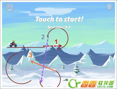 游戏的画面非常简单,赛道是由线条构成的。线条断断续续,没有连贯性,也正因此使得游戏变得异常复杂,值得琢磨。本游戏的操作也十分简单,左手为刹车按键,右手为油门按键,重力感应控制着平衡。我们要根据道路的不同,觉得车的速度和方向。