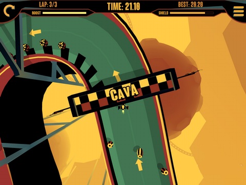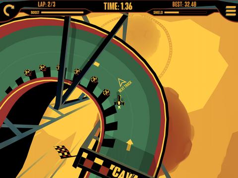 游戏的玩法看起来非常简单,重力感应系统控制着飞船的方向转动,在依靠屏幕左右两边的火箭喷射装置进行飞船的推动,完成围绕太空赛道三圈的狂飙,但就是这短短的三圈就能够让人向一个无头苍蝇一般不断的乱转,无论是倾斜屏幕控制方向,还是点燃推进装置前进都非常地难以保持稳定的控制,真真实实的来了一回太空飙车的体验了。