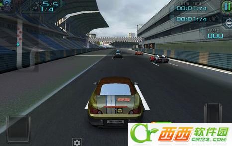 简单的游戏操作,跟同类的赛车游戏差不多,由两大经典操控方式:重力感应和虚拟按键相互配合而成,大家左右摇晃设备利用重力感应原理,来控制赛车左右移动位置来超车,而左右按键,跟真实中的赛车一样,左边是刹车右边是油门。