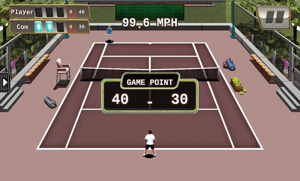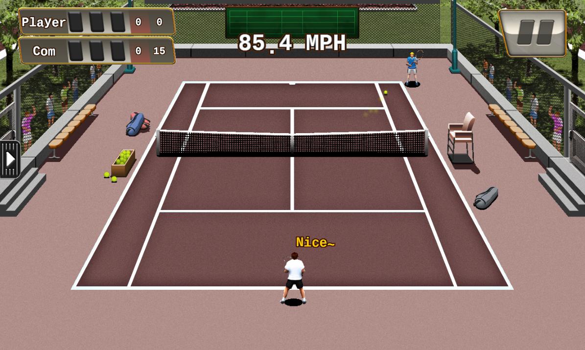进入游戏后玩家么就可以开始跟对手比赛了,比赛的规则玩家们可以参考现实中的网球规则,再次就不赘叙了。值得一提的是游戏中的角色奔跑行走都是全自动的,玩家们不用费心琢磨对方打过来球的位置,当然相对的玩家们也不能掌控自己击出去球的位置。