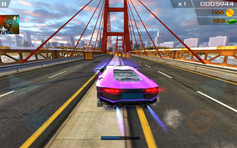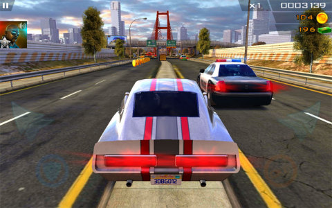 游戏的玩法就比较特殊了,给人一种跑酷的错觉。玩家要在本作中扮演一个驾驶豪车的亡命之徒,以摆脱后方警车的追击、躲避前方警车的夹击、并撞毁他人车辆为目的。你还要在赛道中收集金币和其他奖励物品,有点跑酷的感觉。