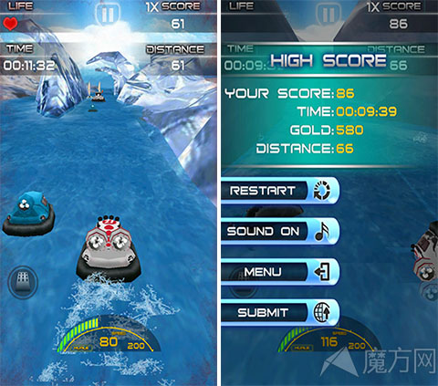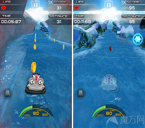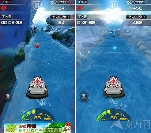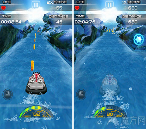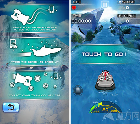 游戏支持重力感应,游戏的操作非常简单,轻轻摇晃手机控制赛艇左右移动就可以了,当然小编相信大家可能会追求速度。没关系玩家可以直接点击屏幕上任何地方,赛艇就会慢慢的加速行驶。