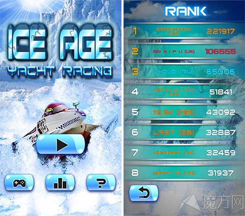 《冰河世纪:赛艇狂飙》主界面和世界排名