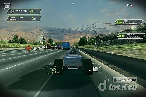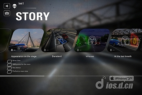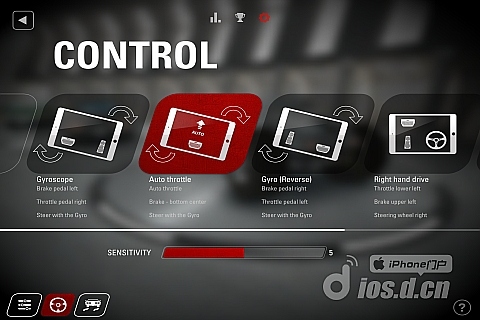 在游戏操控方面,玩家主要通过重力感应来操作赛车,和同类游戏一样,注意路况及时左右移动转弯即可。当然游戏也提供了其他不同的操控模式,但是整体来说还是重力感应控制体验最佳。