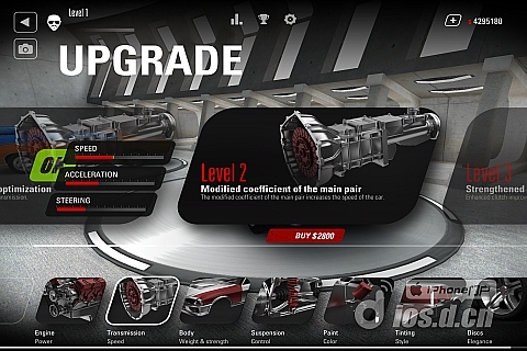 《肌肉狂奔》Muscle Run有着Retina Display显示器的全力支持,优化过的设备显示画面更绝佳。游戏中,原创的音乐悦耳带感,各种不同类型的颜色,排气管,车轮的车型魅力尽显,更绝的是游戏中的车辆改装部分,部分补件的升级次数甚至高达45次,改装让赛车性能更强悍。