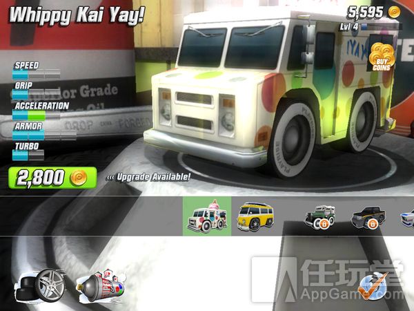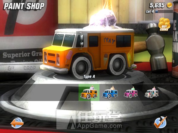 游戏的内购系统非常丰富,除了各种赛车、轮胎,还有各种可爱的喷漆,花100金币就能买一个,装饰一下自己的小赛车,赏心悦目。