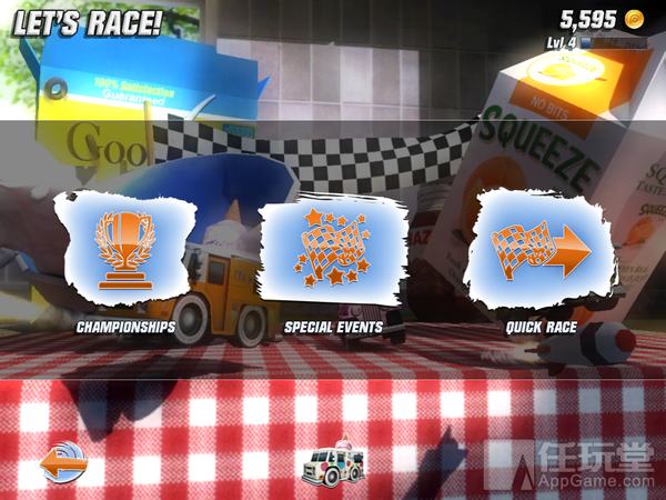 Table Top Racing《桌面狂飙》是一款非常为玩家着想的游戏,虽然设置了锦标赛、特殊赛,但玩家并不需要一场场参加比赛才能体验所有赛道,因为游戏设置了快速通道,可以直接享受各种好玩赛道。