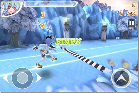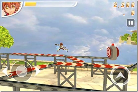 在滑竿上滑行时,可以通过划动方向键实现改变路径。