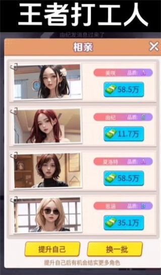 《王者打工人》是一款深度模拟打工生活的游戏,让玩家体验不同职业的日常生活,从基础的工作技能到高级的专业知识,玩家需要不断学习和成长,以应对各种挑战和突发情况。据工作的不同,玩家需要培养相应的技能和专业知识,如餐厅服务员需要学习服务流程和礼仪知识。玩家需要合理安排时间,以应对不同工作的难度和时间要求。