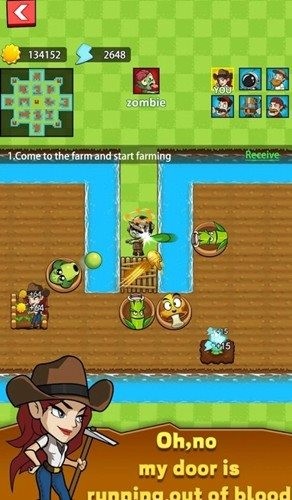 一款有趣的植物塔防手游,游戏玩法类似于植物大战僵尸的游戏,玩家需要在游戏中阻止僵尸前进,避开僵尸找到合适的农田逃跑。炮塔是通过发展经济和种植作物来建造的,只能在农田的空地上建造。点击开放空间后,将弹出播种菜单。在游戏中,玩家需要根据自己的经济状况有选择地种植农作物,以逐步扩大自己的优势。